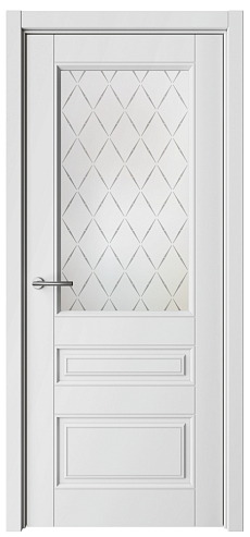 Дверь Классика-3 ширина 90 см Белый Эмаль Стекло мателюкс "Лорд матовое" кромка В цвет полотна в Перми