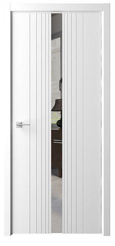 Дверь Геометрия-8 ширина 90 см Латте Эмаль Зеркало грей с замком кромка В цвет полотна в Перми