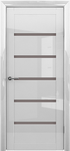 Дверь Вена ширина 90 см Белый глянец Глянец Стекло мателюкс бронза с замком в Перми